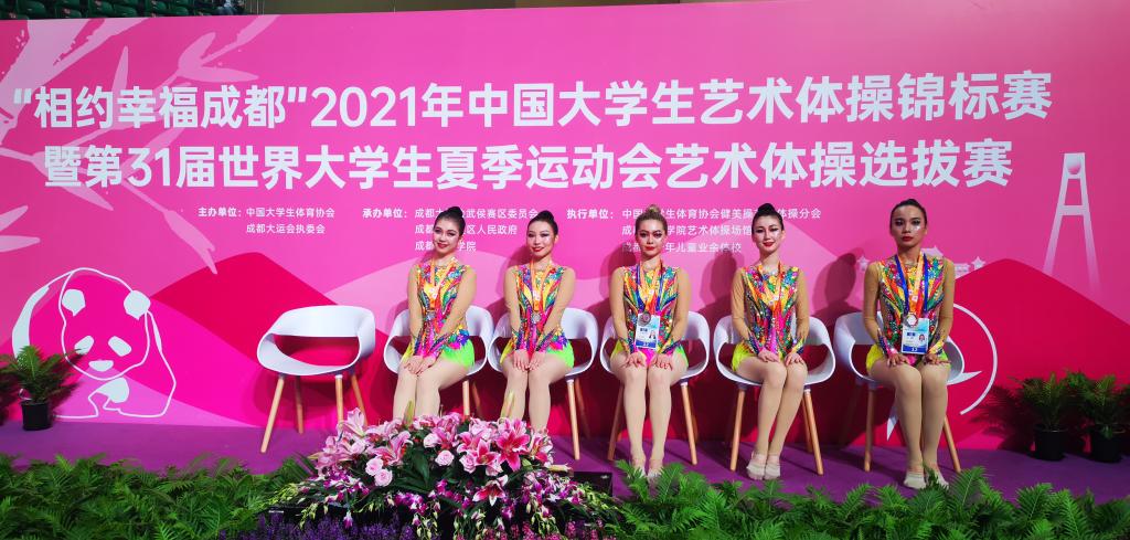 本网讯(通讯员 谢华)“相约幸福成都”2021年中国大学生艺术体操锦标赛暨第31届世界大学生夏季运动会艺术体操选拔赛在成都体育学院举行。来自全国各地共31支高校参赛队的385名运动员参赛,我校艺术体操代表队荣获甲组第二名。