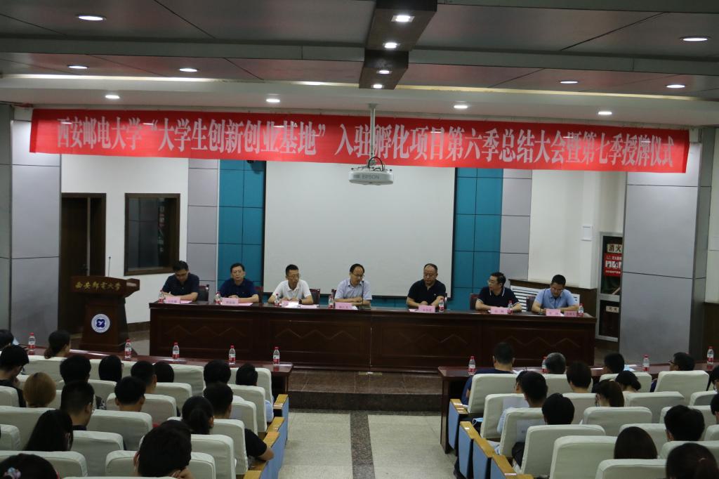 本网讯(通讯员 李鹏飞)6月9日下午,我校“大学生创新创业基地”入驻孵化项目第六季总结大会暨第七季项目授牌仪式在长安校区办公楼附一楼报告厅举行。副校长韩江卫出席大会并讲话。学生工作部、研究生工作部、教务处、科研处、招生就业处主要负责人,各学院党委(党总支)书记、副书记、副处级组织员、分管实践教学工作副院长,各分团委书记,入驻孵化项目师生代表及校学生科协、校创协学生骨干等200余人参加入驻仪式。入驻仪式由校团委书记李涛主持。