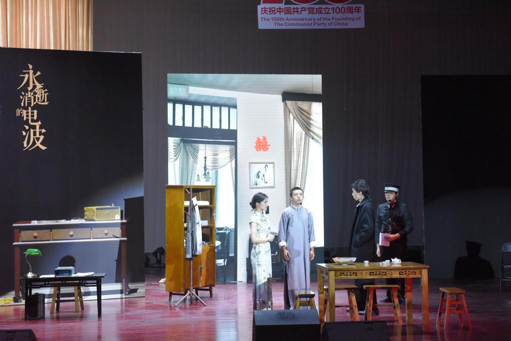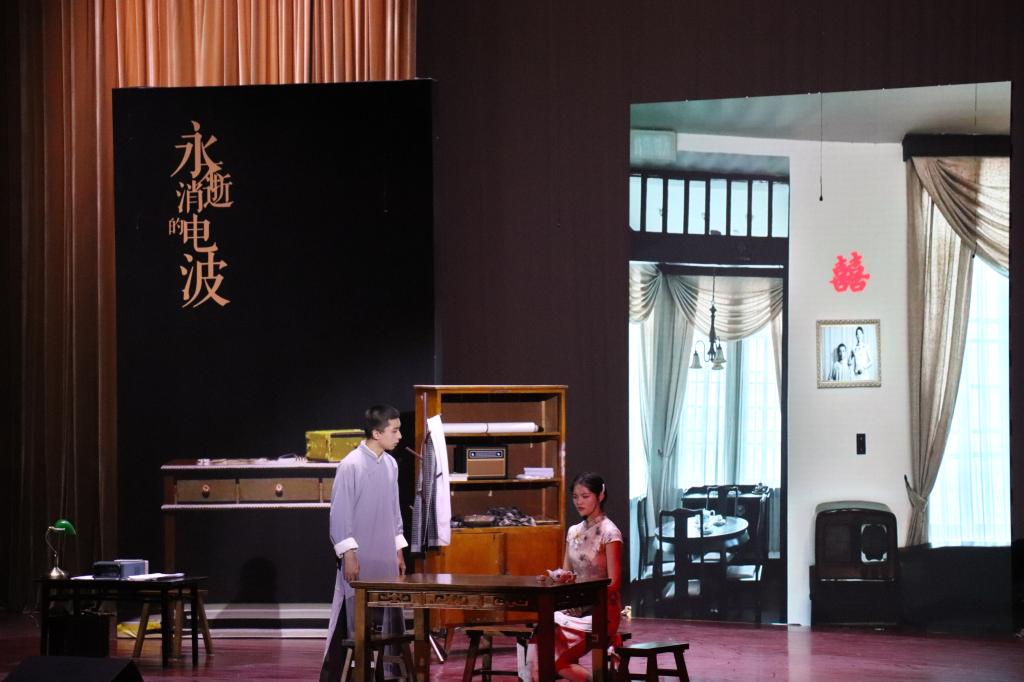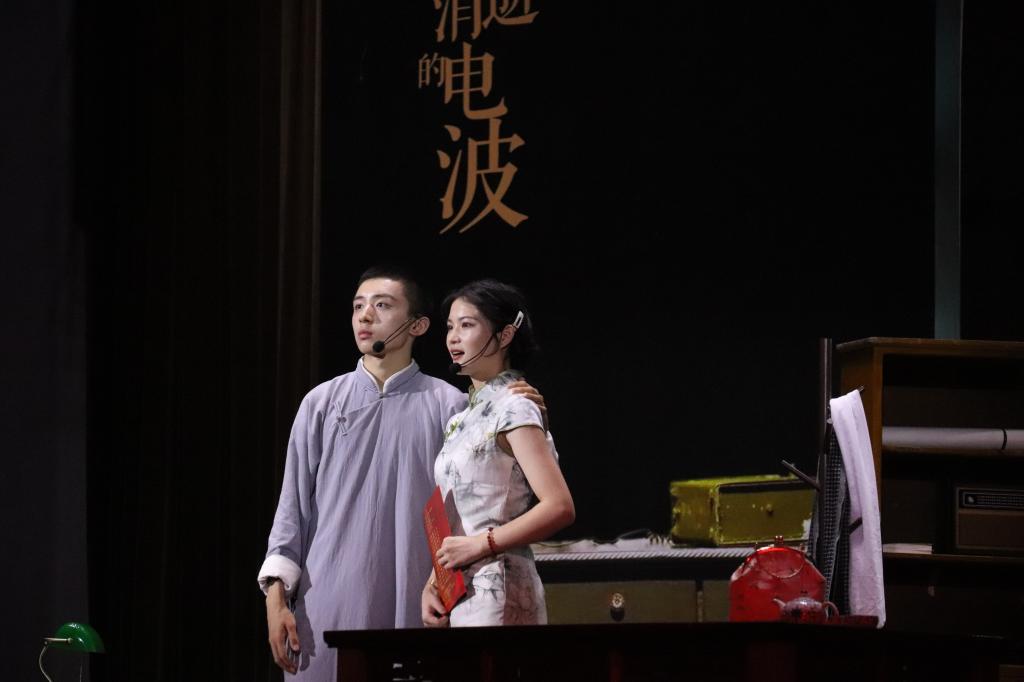 红色话剧《永不消失的电波》演出由校团委、党委组织部、党委宣传部、党委学生工作部承办,熠辉学生话剧社协办,全部演员均为在校学生。演出团队历时数月,立足于传承革命的精神,坚持自导自演理念,认真参照历史资料设计舞台,将红色文化基因融入校园文化,经过反复打磨,最终为师生呈现了一台经典的红色剧目。