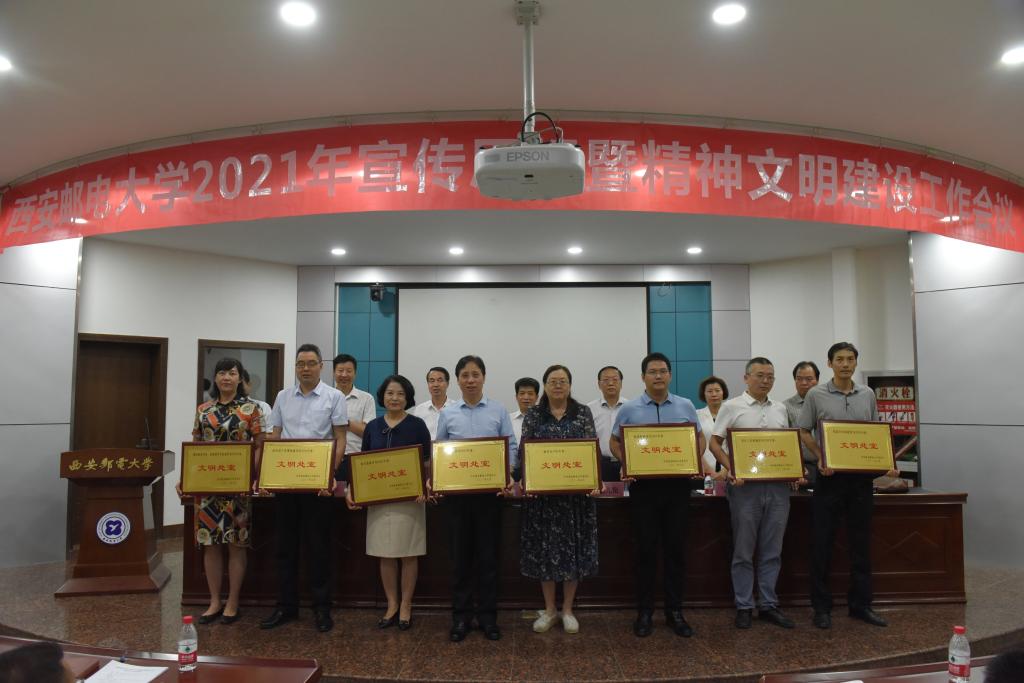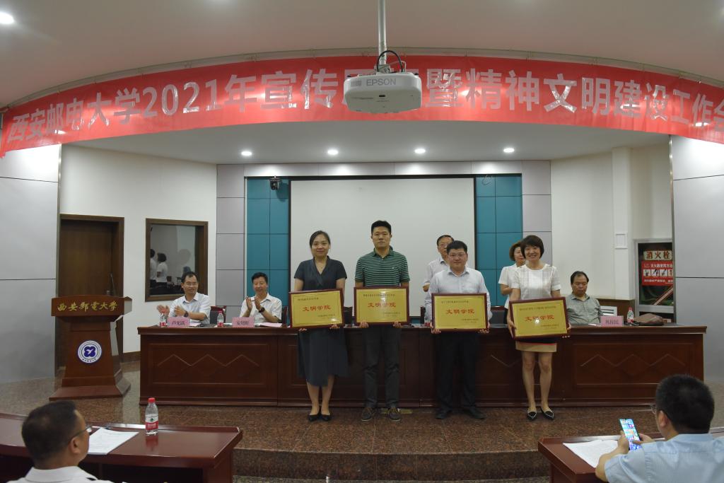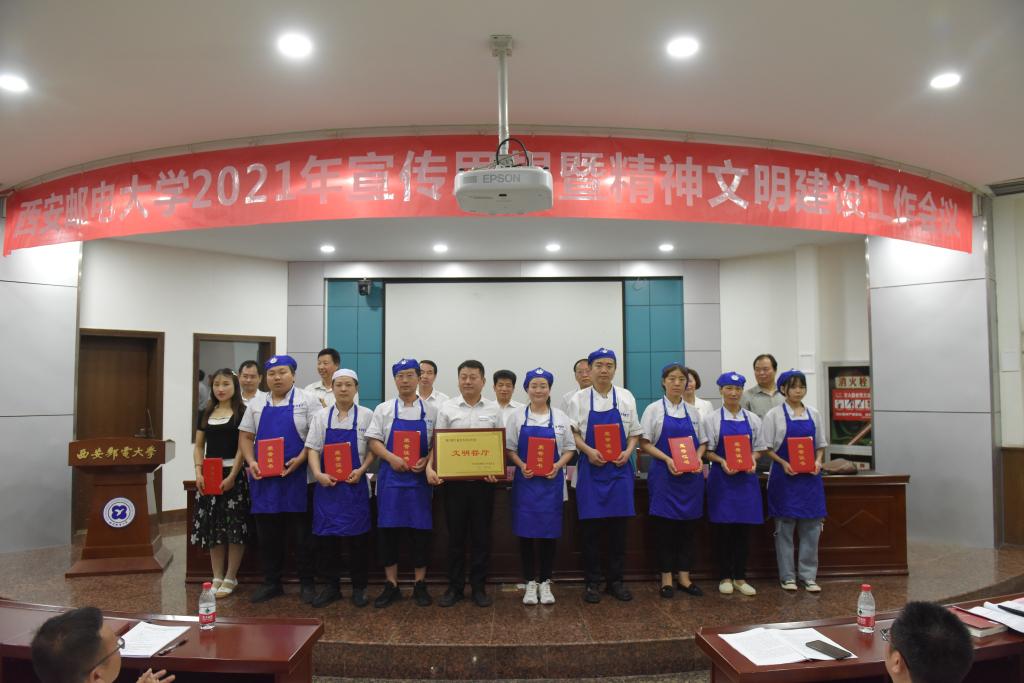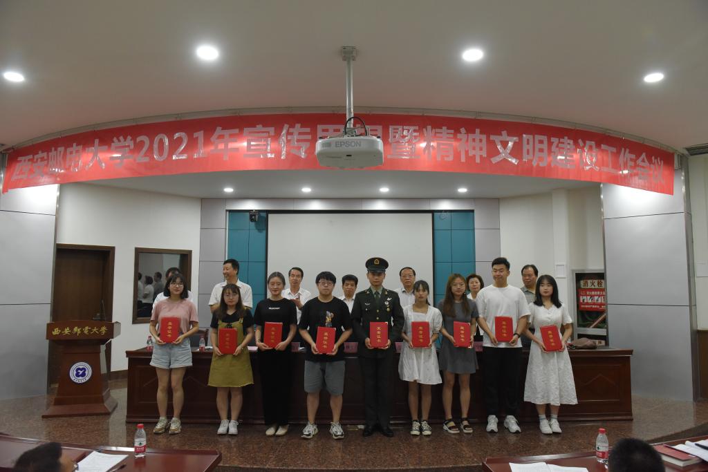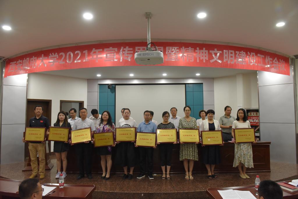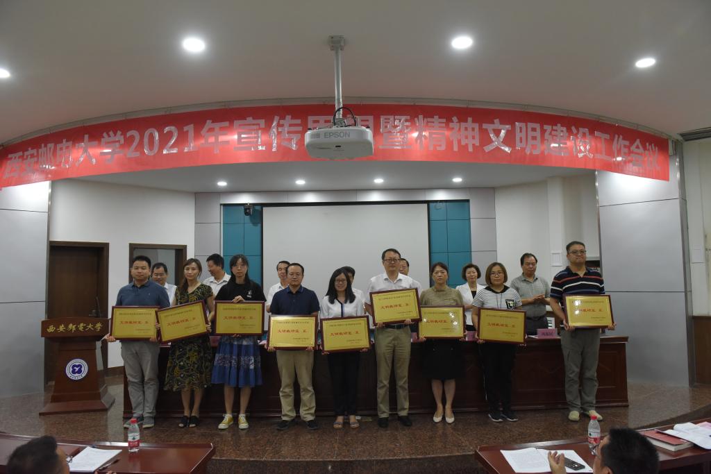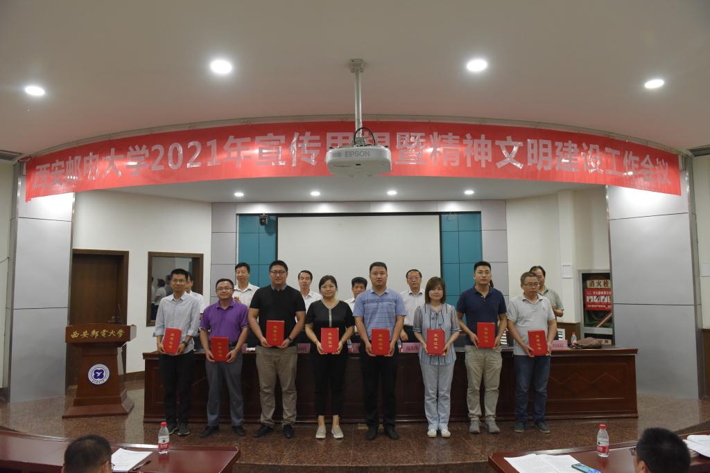 杨更社代表学校党委对获得荣誉的集体和个人表示祝贺,对广大党员干部和师生员工的辛勤付出表示感谢。就进一步做好学校宣传思想和精神文明建设工作,杨更社提出三点要求,一是认清形势,把握大势,提升政治判断力。今年是中国共产党成立100周年,是“十四五”开局之年,也是学校追赶超越的关键一年。世情、国情、党情持续变化,学校宣传思想工作既要乘势而上、主动寻找和创造机遇,也要正视新形势、新问题,以求是奋进的精神迎接挑战。二是提高站位,突出重点,把牢工作领导权。要真学真懂真信真用习近平新时代中国特色社会主义思想,坚持党的全面领导,牢牢把握意识形态工作领导权,构建宣传思想和精神文明建设工作“大格局”。三是夯实责任,健全机制,增强工作凝聚力。树立起大宣传思想理念,统筹规划、系统设计、整体推进,统筹整合校内外各种优势资源、调动一切积极因素,心往一处想、劲往一处使,形成强大合力,把工作落到实处。杨更社强调,不断加强和改进宣传思想和精神文明建设工作,使命光荣、责任重大、任务紧迫。要更加紧密地团结在以习近平同志为核心的党中央周围,要按照中省要求,努力把学校宣传思想和精神文明建设工作这篇文章写出西邮特色、写出西邮水平、写出西邮精彩,奋力开创学校宣传思想和精神文明建设工作新局面,以更加优异的成绩庆祝建党100周年。