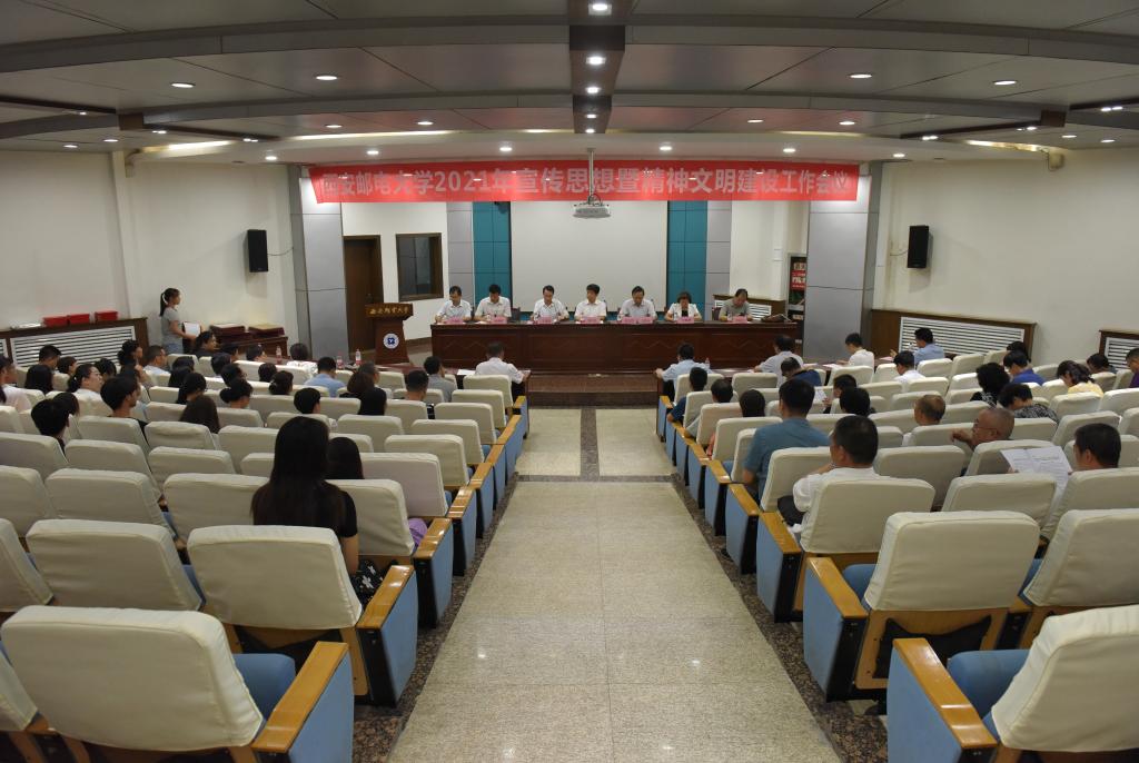 王国良作西安邮电大学2020年度宣传思想和精神文明建设工作报告,报告从思想理论建设不断强化、思想政治工作体系逐步形成、文明校园创建工作稳步推进、社会主义核心价值观广泛弘扬、校园文化建设有序推进、学校形象宣传成效显著、意识形态工作稳固加强等七个方面总结回顾了2020年以来学校宣传思想工作取得的成绩,从抓强创新理论武装、抓牢意识形态工作、抓实思想政治教育、抓优文明校园创建、抓亮大学文化建设、抓新媒体舆论宣传等六个方面对今后的宣传思想和精神文明建设工作进行了安排部署。