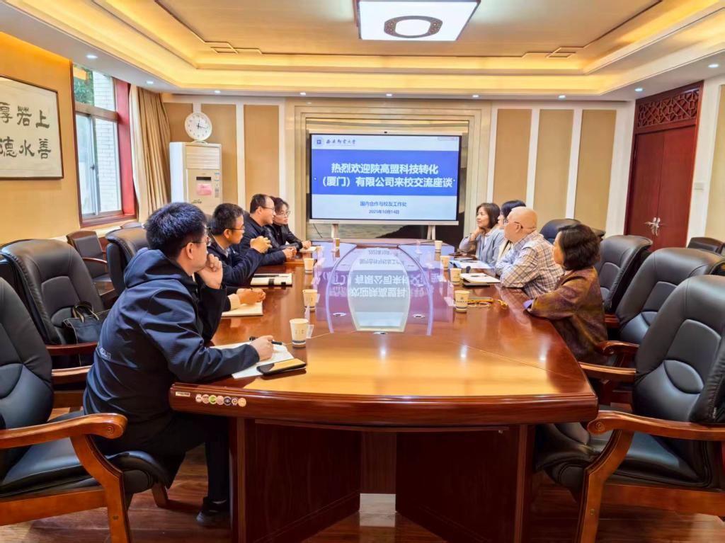 陕高盟及陕高盟科技公司负责人介绍了联盟资源整合优势及企业科技成果转化服务经验,提出希望以“校地企协同”模式,推动我校优质科研成果与企业实际需求精准对接,助力技术成果落地转化。同时,依托企业产业资源,为我校学生搭建就业实习平台,提供岗位信息与实践指导,帮助学生提升就业竞争力。