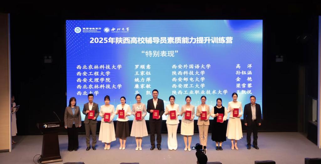 本网讯(通讯员 张青平)11月5日至7日,由陕西省委教育工委、省教育厅主办的2025年陕西高校辅导员素质能力提升训练营在西北大学长安校区举办。我校人工智能学院、自动化学院辅导员金艳获“特别表现”荣誉称号、罗婷获“优秀风采”荣誉称号。