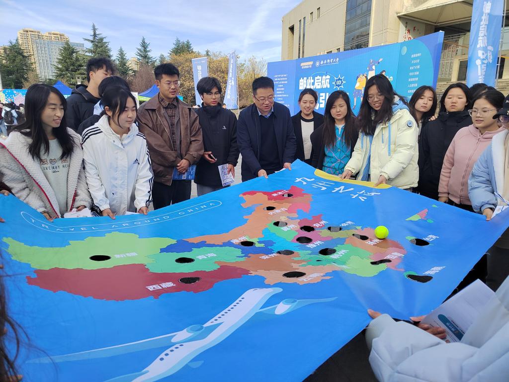 本网讯(通讯员 谢铮胜)11月19日-21日,作为“中央专项彩票公益金宏志助航计划”的重要落地项目,学校“邮此启航 职引未来”第三届生涯嘉年华活动在长安校区西区大学生活动中心广场及雁塔校区篮球场成功举办。本次活动以《大学生职业生涯规划》课程实践为核心载体,吸引全校近3600名学生参与。校党委副书记胡海宁深入活动体验区与学生交流互动,鼓励大家在实践探索中明确生涯方向。就业学院常务副院长李琳娜、各学院相关负责人、就业指导教师参加活动。