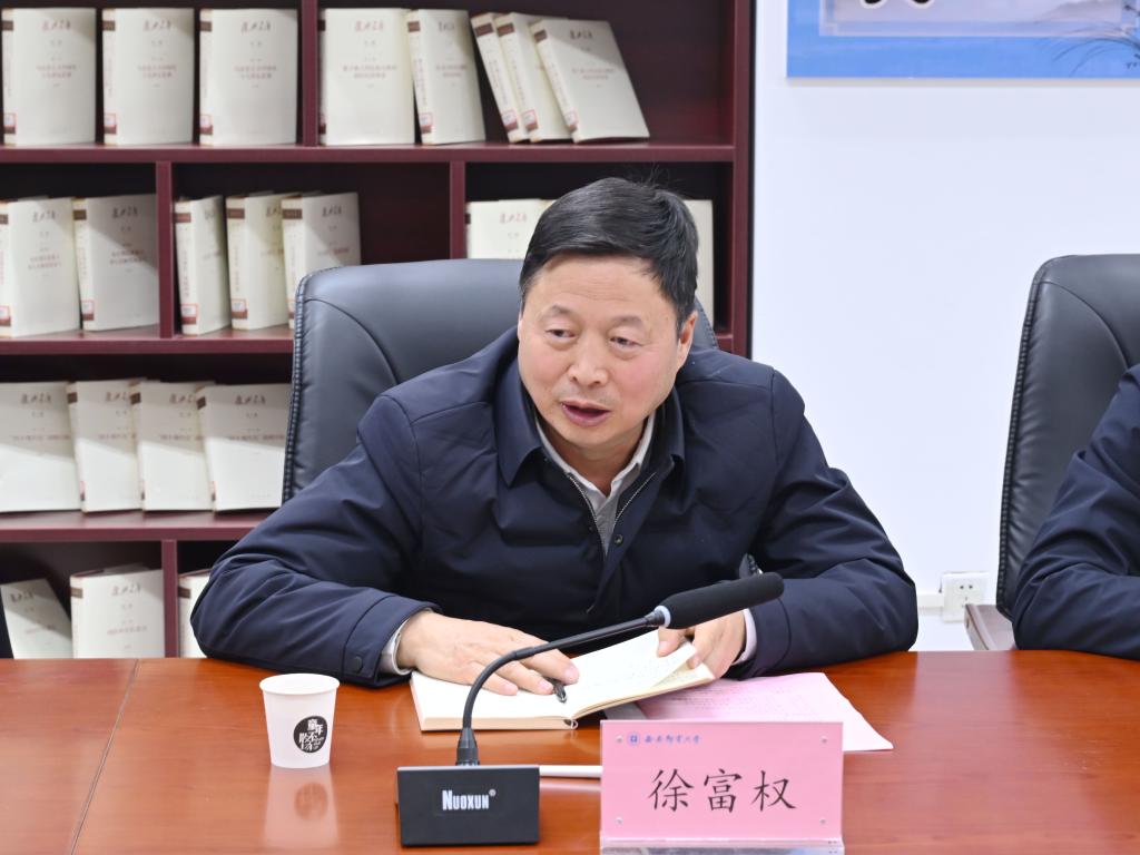 马宁对徐富权一行来校考察调研表示热烈欢迎,向省教科文卫体工会长期以来对我校工会工作的大力支持和帮助表示衷心感谢。他表示,申报职工(劳模、工匠人才)创新工作室是调动广大教职工在创新实践中发挥示范引领作用、积极投身学校高质量发展的重要实践。美育在涵养心灵、激发创造力方面具有独特作用,“邢艳华美育创新工作室”的培育与建设是学校践行“以美育人、以文化人”教育理念的重要载体。学校将进一步整合资源、搭建平台,促进美育与科技创新的深度融合,积极支持工作室在人才培养、艺术创作及社会服务中的作用,持续激发教职工的创新活力,提升育人成效。