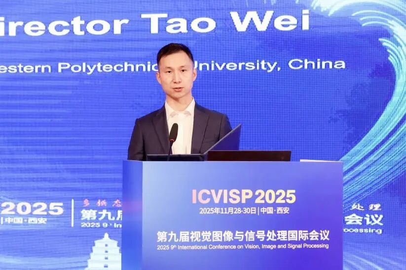 本网讯(通讯员 薛健)近日,第九届视觉图像与信号处理国际会议(ICVISP 2025)在西安召开。APSIPA副主席、西北工业大学何明一教授,西安电子科技大学副校长、IEEE西安分会副主席刘宏伟教授,APSIPA副会长、日本东京农工大学Toshihisa Tanaka教授,我校校长卢光跃教授,西北工业大学戴玉超教授,澳门大学周建涛教授,南昌航空大学熊邦书教授及国内外百余位专家学者、行业精英及青年科研人员参会。开幕式由戴玉超主持。