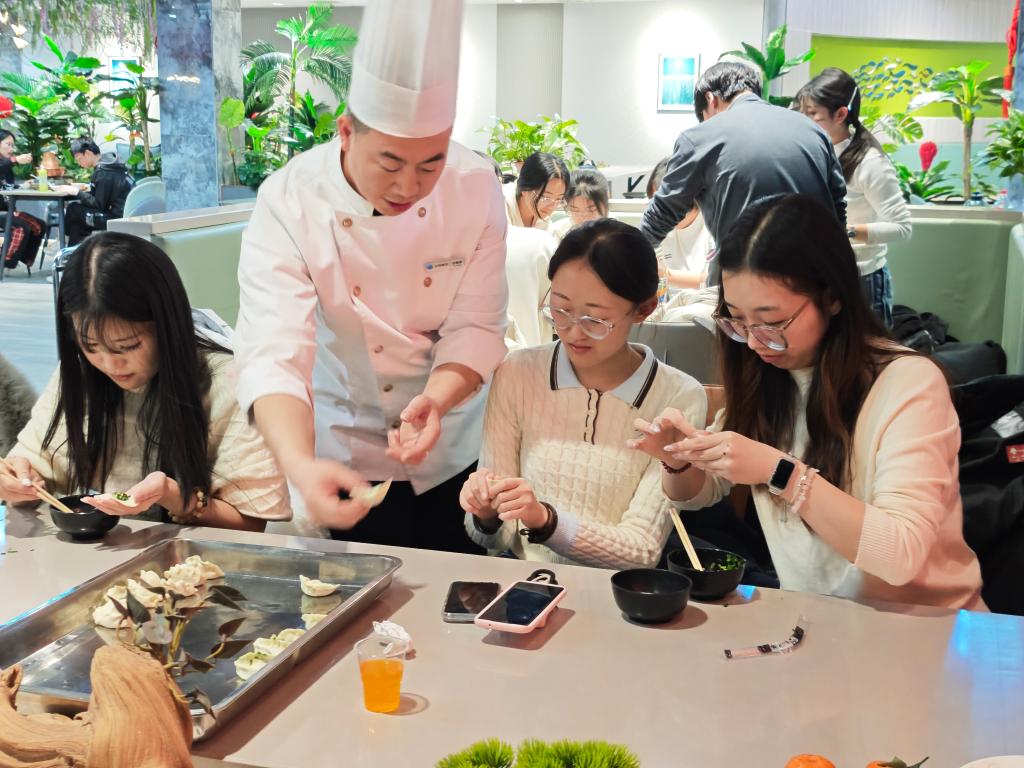 活动现场,食堂工作人员从食材处理、调料配比到包馅手法,逐一细致指导并示范。同学们热情参与、相互协作、配合默契,一个个形态各异却饱含心意的饺子陆续成型。在包制、煮熟、品尝过程中,师生围坐畅谈劳动感悟与校园点滴。
