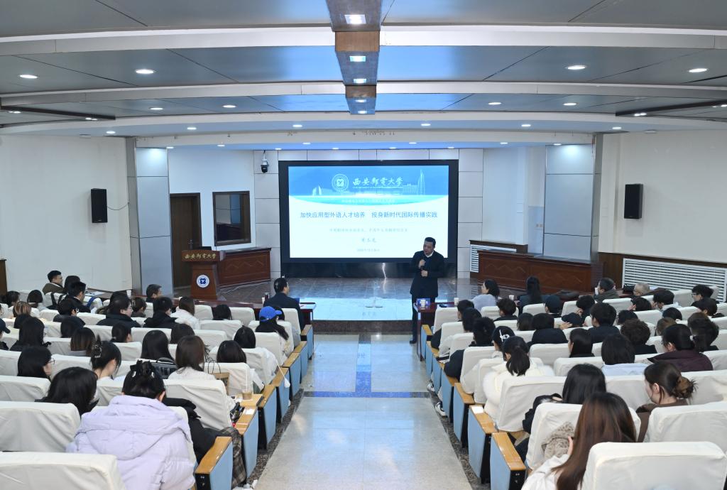 本网讯(通讯员 闫欣 任怡静)12月26日,我校第七十四期人文大讲堂在长安校区办公楼附一楼报告厅举行。本次活动邀请中国翻译协会副会长、中国外文局翻译院院长黄玉龙研究员作学术讲座。外国语学院、数字艺术学院、马克思主义学院师生代表100余人参加讲座。讲座由校党委副书记安增旺主持。