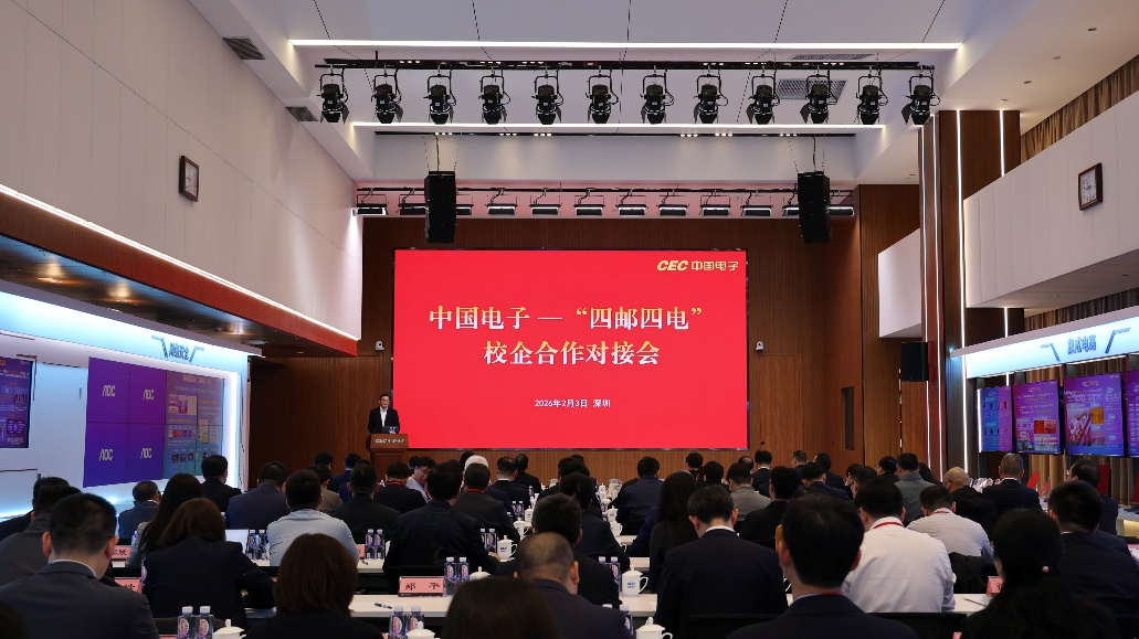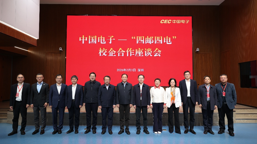 卢光跃介绍了我校七十余载深耕电子信息领域的发展历程,以及“特色立校、人才强校、创新兴校、质量荣校”的核心发展理念,重点阐述了学校构建的全方位、多层次、立体化校企合作体系,以及在人才培养、科技创新等方面取得的显著成效。他表示,学校高度关注中国电子的发展成就,对双方未来的深度合作充满期待;中国电子在校企合作领域的成熟实践,为双方进一步深化合作提供了可借鉴、可复制的宝贵经验。希望双方加快推动本科生创新实验室建设、人才联合培养、特色教材编制等十项合作举措落地见效,热切期盼以“四邮四电”联盟为重要平台,进一步深化人才共育、科研共研、产业共兴,实现校企协同发展、互利共赢。