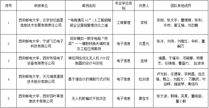 本网讯(通讯员 董元)近日,陕西省教育厅公布2025年陕西省专业学位研究生教学案例入库名单,我校推荐的5项教学案例入选。本次入选案例涵盖电子信息、工商管理等优势学科领域,集中彰显了学校以信息特色为引领,深化专业学位研究生教育改革的阶段性成效,是学校推进实践育人、深化产教融合协同发展的重要成果。