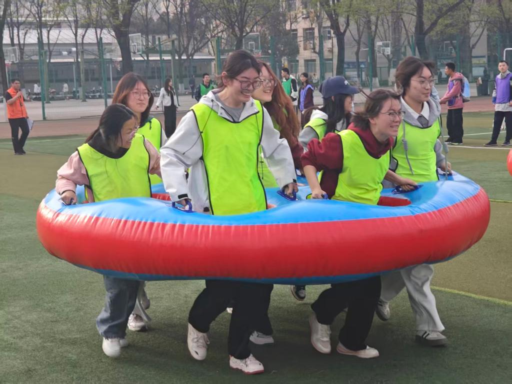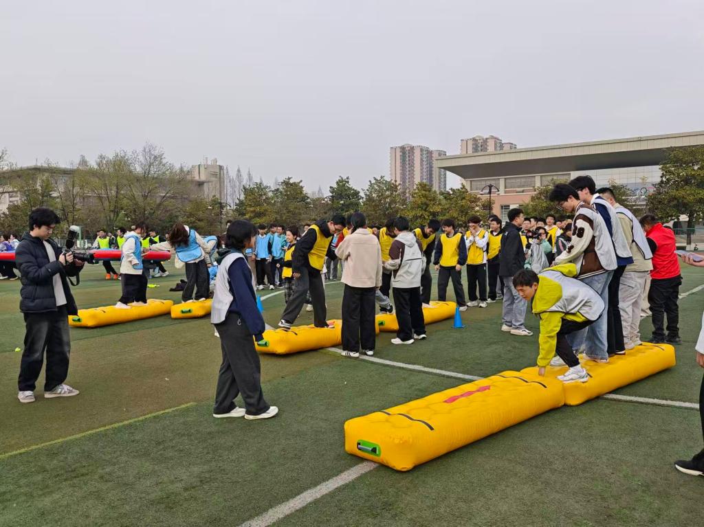 启动仪式后,青春嘉年华素质拓展活动火热开展。“十拿九稳”“同舟共济”“俄罗斯方块”“八仙过海”“同心圆”五项趣味运动同时进行,500余名学生组成4个战队踊跃参与、沉浸式竞技比拼,现场气氛热烈、朝气蓬勃、处处洋溢着青春活力。