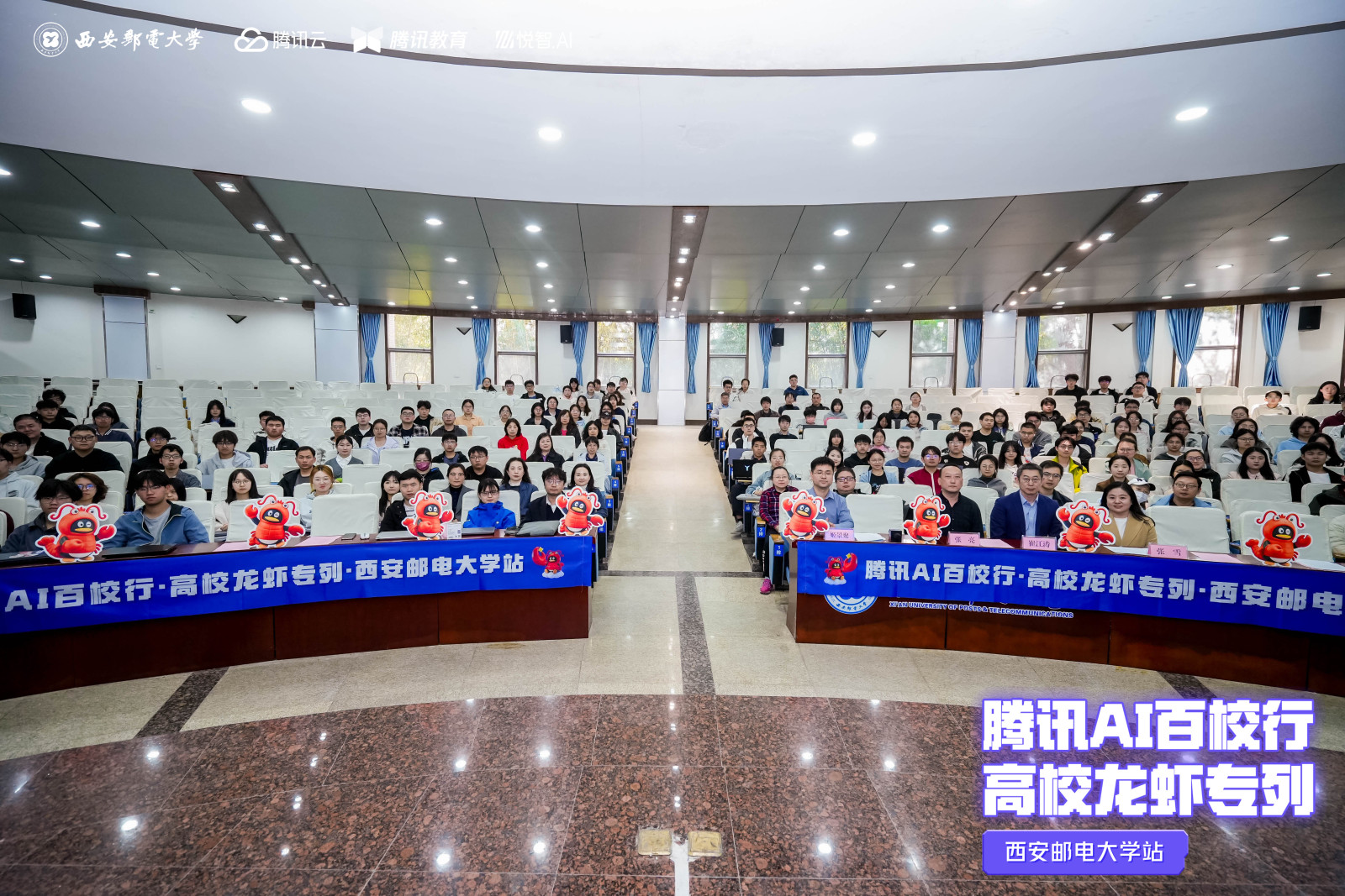 本网讯(通讯员 李晶)3月31日,由腾讯发起的“AI百校行-高校龙虾专列”活动在我校长安校区举办。副校长崔江涛出席活动并致辞。腾讯云高等教育西北区业务拓展总监张雪、腾讯云教育行业高级架构师张亮、腾讯云高等教育西北区相关业务负责人,我校教务处相关负责人及师生代表300余人参加活动。