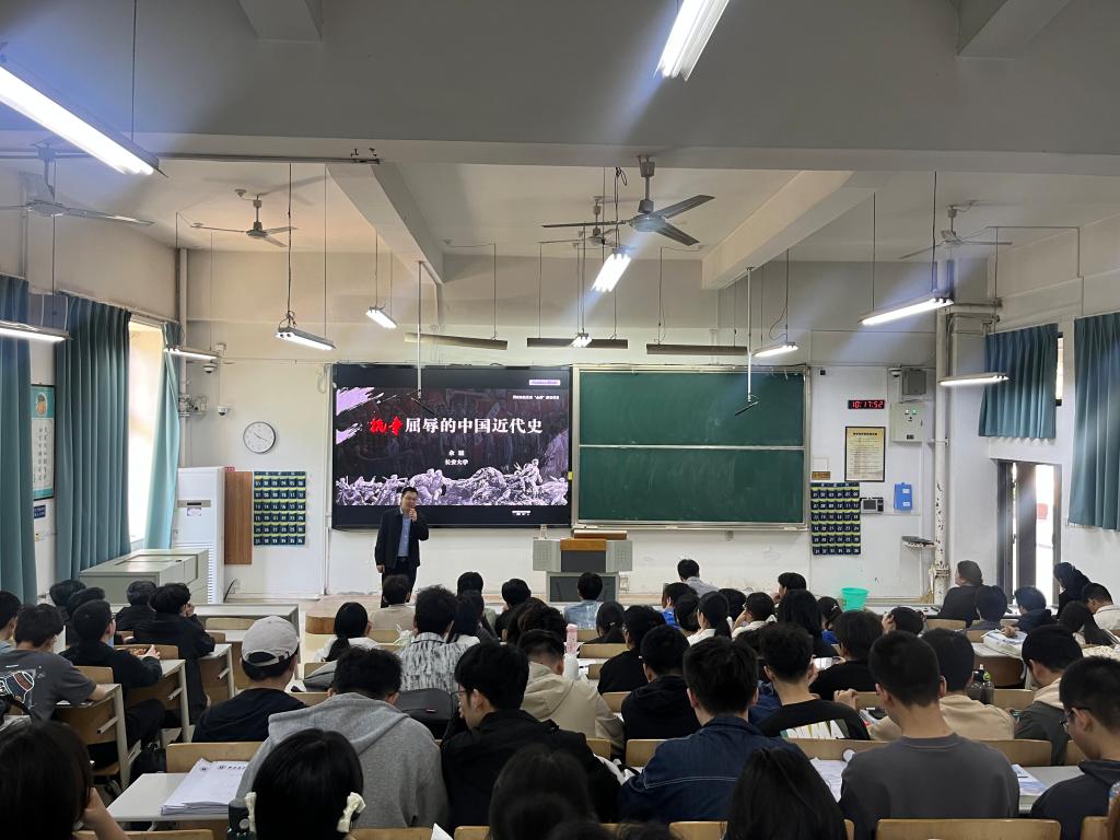 余猛以《抗争屈辱的中国近代史》为题,系统梳理了1840年鸦片战争以来中华民族从“肌体之伤”到“家国之殇”的百年苦难历程,深刻剖析了近代中国反侵略战争屡遭失败的原因、以及帝国主义未能完全瓜分中国的深层逻辑。他结合丰富的史料与理性追问,引导青年学生从近代屈辱与抗争的历史脉络中校准人生航向、挺膺时代担当。