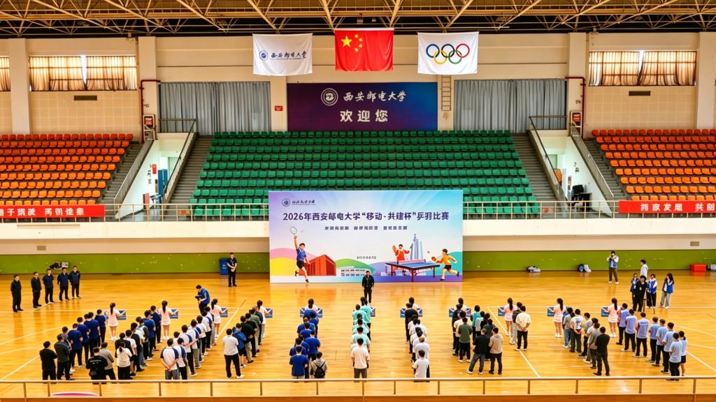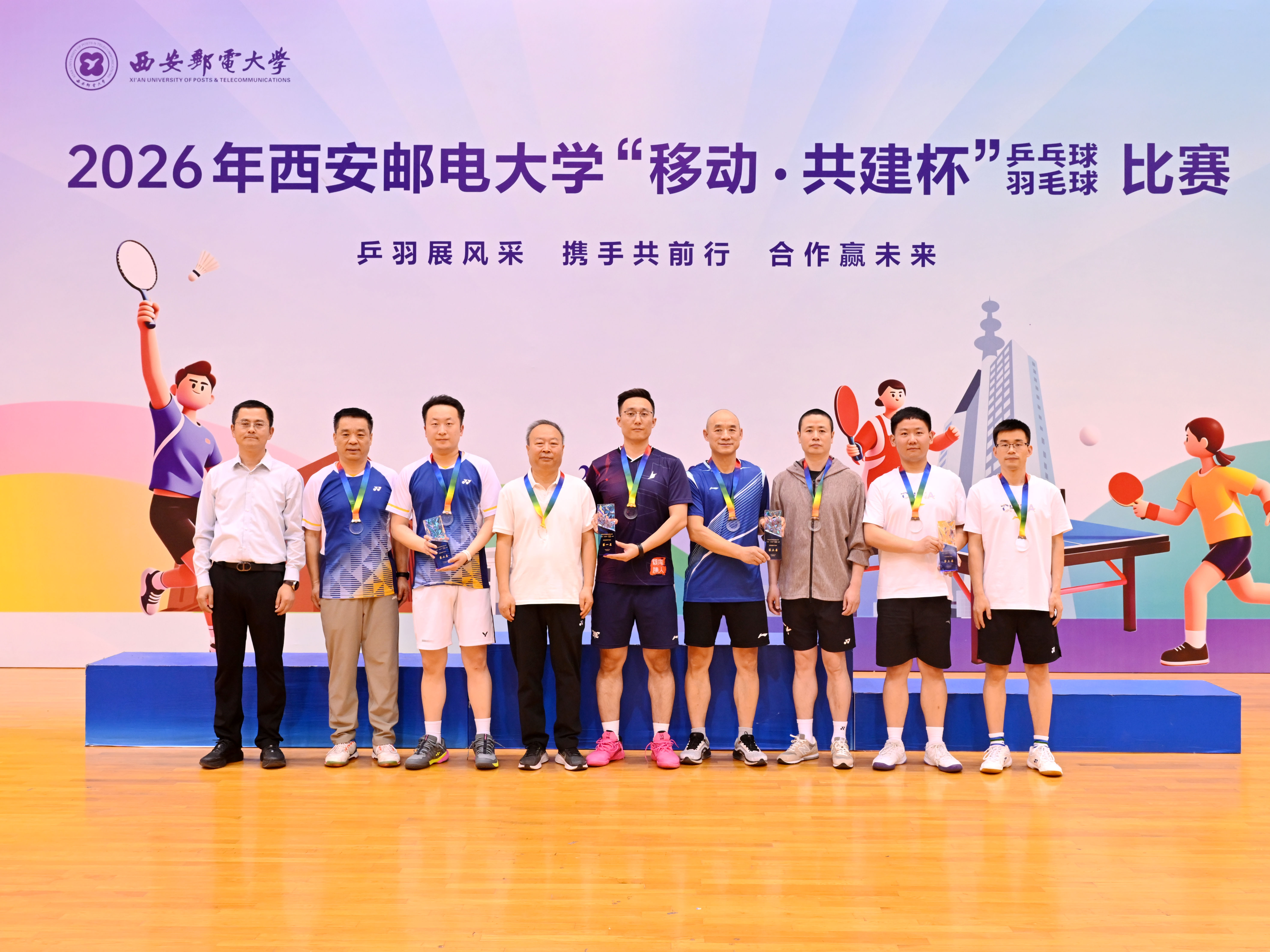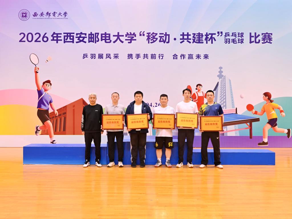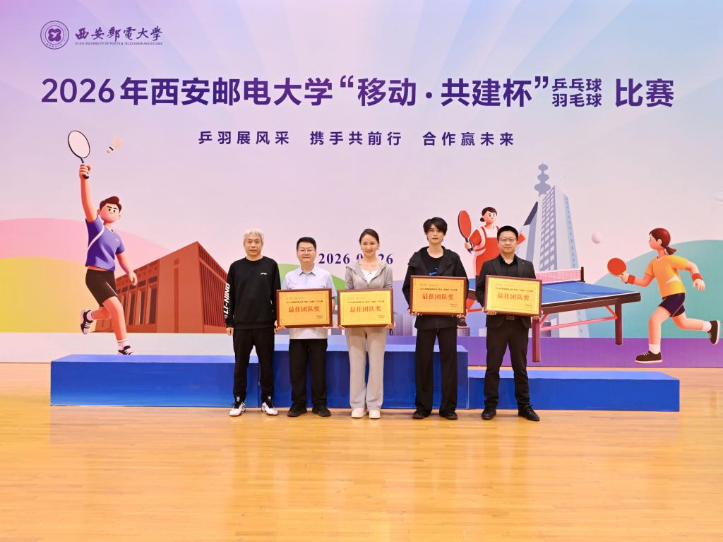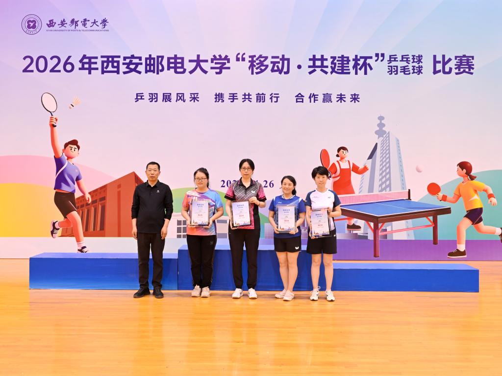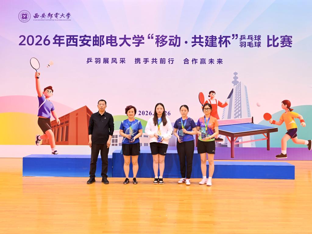 本网讯(通讯员 李睿)校企联动聚合力,乒羽传情促协同。4月26日,2026年西安邮电大学“移动·共建杯”乒乓球、羽毛球比赛在长安校区西区体育馆开赛。校党委书记马宁宣布比赛开幕并为获奖个人及团队颁奖,校长卢光跃致开幕欢迎辞,校党委副书记安增旺主持开幕式,副校长韩江卫出席活动。来自中国移动通信集团陕西有限公司、中国电信股份有限公司陕西分公司、中国联合网络通信有限公司陕西省分公司、中国邮政集团有限公司陕西省分公司、电信科学技术第四研究所有限公司、电信科学技术第十研究所有限公司、华为技术有限公司西安分公司、中兴通讯股份有限公司陕西分公司、国家无线电频谱管理研究所有限公司、中国铁塔股份有限公司陕西省分公司及我校教职工组成的11支代表队、125名运动员齐聚赛场,以球会友、竞展风采。