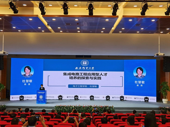 我校电子工程学院院长杜慧敏应邀在论坛上作了《集成电路应用型人才培养的探索与实践》的专题报告,从“坚持需求导向、突出能力培养、深化产教融合、完善育人体系和强化激励机制”等方面分享了我校集成电路设计与集成系统专业在工程应用型人才培养方面的思路、举措及成效。