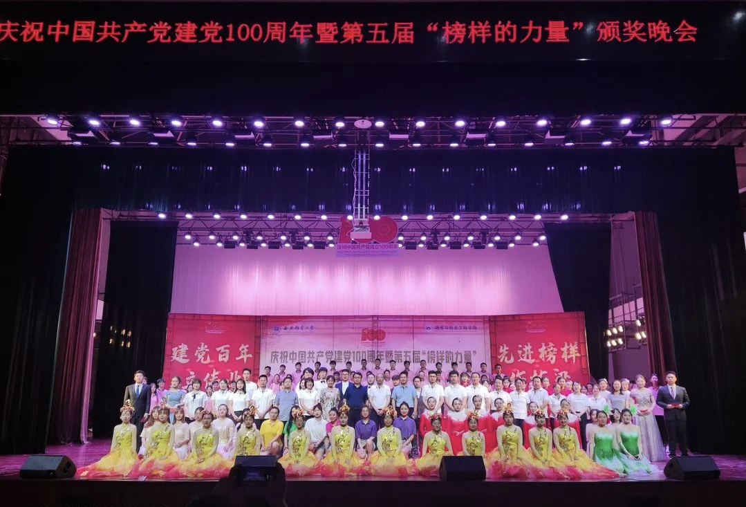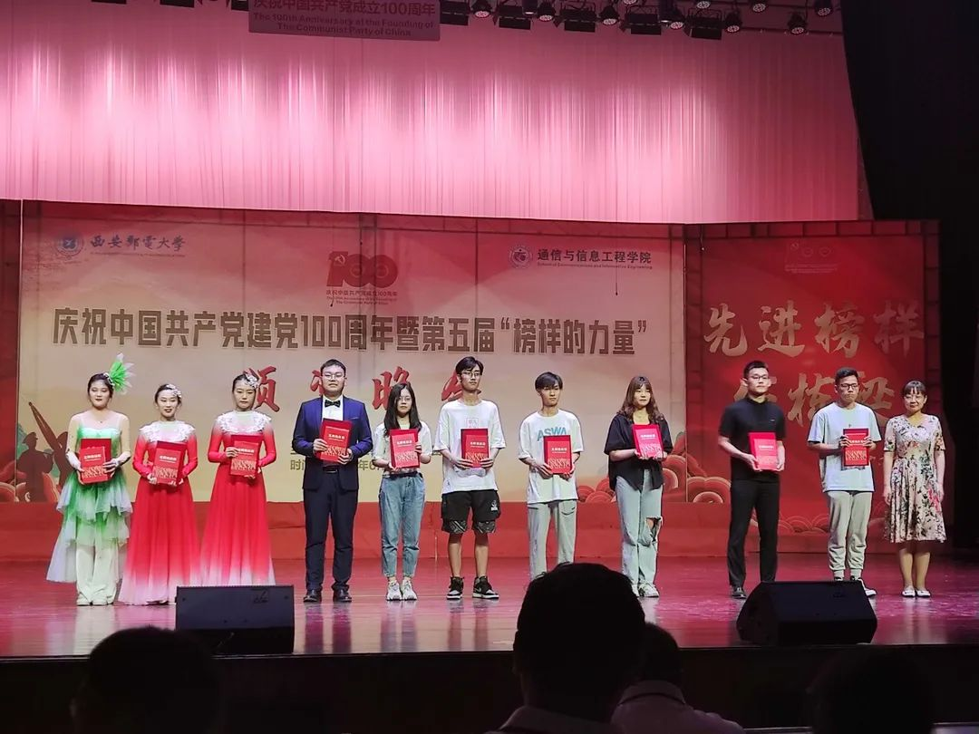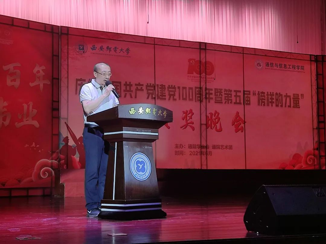 本网讯(通讯员 王昱)6月10日,通信与信息工程学院在长安校区大学生活动中心举行庆祝中国共产党成立100周年暨第五届“榜样的力量”颁奖晚会。校党委委员、党委组织部部长苗忠,党委学工部副部长田东,校团委书记李涛,学院党委书记郭琪,执行院长孙爱晶,学院党委副书记郭黎及各系部实验室主任、全体学工干部、师生代表等500余人参加晚会。