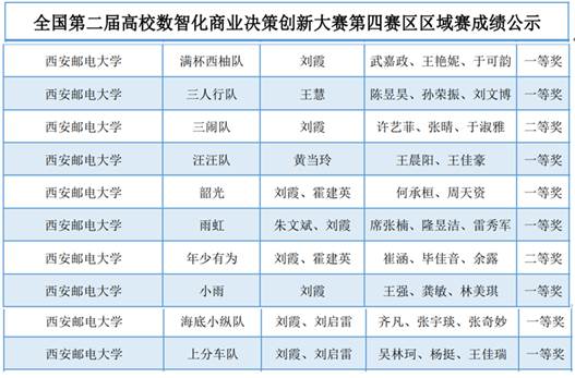本网讯 (通讯员 刘霞)近日,全国第二届高校数智化商业决策创新大赛学生组区域赛圆满落幕。来自陕西、甘肃、重庆、山西、山东等10个省(区、市)的近800支代表队参加,我校经济与管理学院参赛的10支学生团队获得区域赛一等奖8项、二等奖2项。