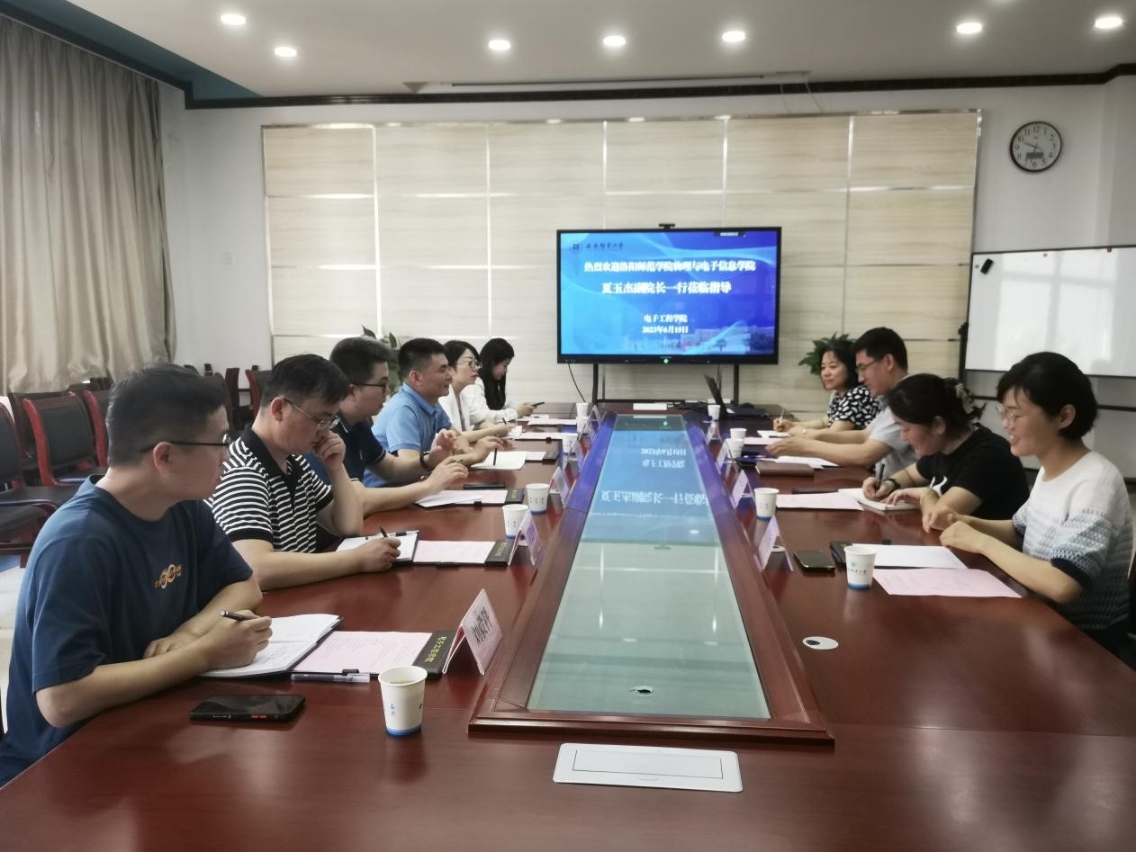 本网讯 (通讯员 蔡秀霞)2023年6月15日上午,洛阳师范学院物理与电子信息学院副院长夏玉杰、专业负责人高雅和部分专业骨干教师来我校电子工程学院调研交流中外合作办学工作。电子工程学院电子信息工程(中外合作办学)专业负责人张新、中外合作办学办公室主任白菊蓉等参加了交流座谈。电子工程学院副院长邓军勇主持交流座谈会。