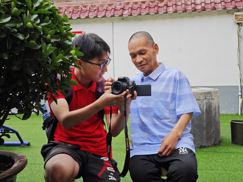 “爷爷,您看,这个是相机快门,按下去,就可以拍摄到眼前的风景”。活动中,团队成员赵自浦同学提出了他的想法,教老人们摄影、拍照,老人们通过手把手的学习拍下了属于自己的照片,受到了老人们的赞许和好评。