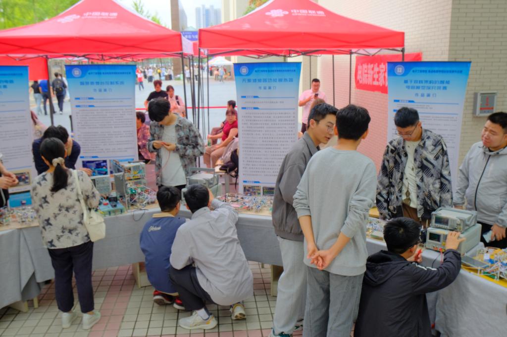 隆重氛围、竞赛启智。报到当天,学院楼下迎新现场温馨而隆重,学校领导向学院家庭困难学生发放暖心资助大礼包,学院领导走进宿舍与学生进行亲切交流。学院选取22项高水平学生科技竞赛作品进行现场展演,吸引众多新生和家长驻足观看,增强了学生的专业自信,有效激发新生对电子信息领域的好奇心与求知欲。