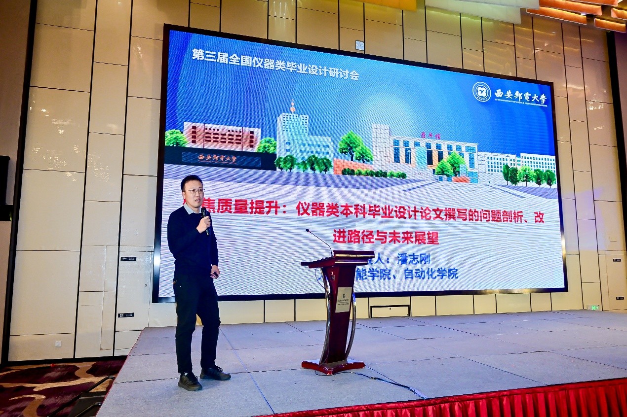 潘志刚作题为《聚焦质量提升:仪器类本科毕业设计论文撰写的问题剖析、改进路径与未来展望》的大会报告。报告中,他基于对历年学生首次提交论文初稿的系统分析,精准梳理了论文写作中存在的核心问题,并针对性提出三大改进路径:一是借鉴国外顶石课程(Capstone Course)的先进经验,在论文正式撰写前,要求学生完成文献综述撰写、本专业优秀论文评析、选题写作方案制定、写作大纲编制等前置环节,夯实论文写作基础;二是强化毕业设计过程管理,细化各阶段指导清单,引入写作过程动态评分考核机制,实现对毕业设计全流程的质量把控;三是推动毕业设计与学科竞赛、大学生创新创业训练计划等实践环节深度融合,引导学生依托实践积累凝练课题方向,切实提升毕业设计的实践性与创新性。此外,潘志刚还提出了仪器类专业毕业设计的未来发展方向:聚焦智能化,着力提升学生的技术融合能力;强化工程性,重点培养学生解决复杂工程问题的能力;突出规范性,全面提升学生的学术素养与写作水平。