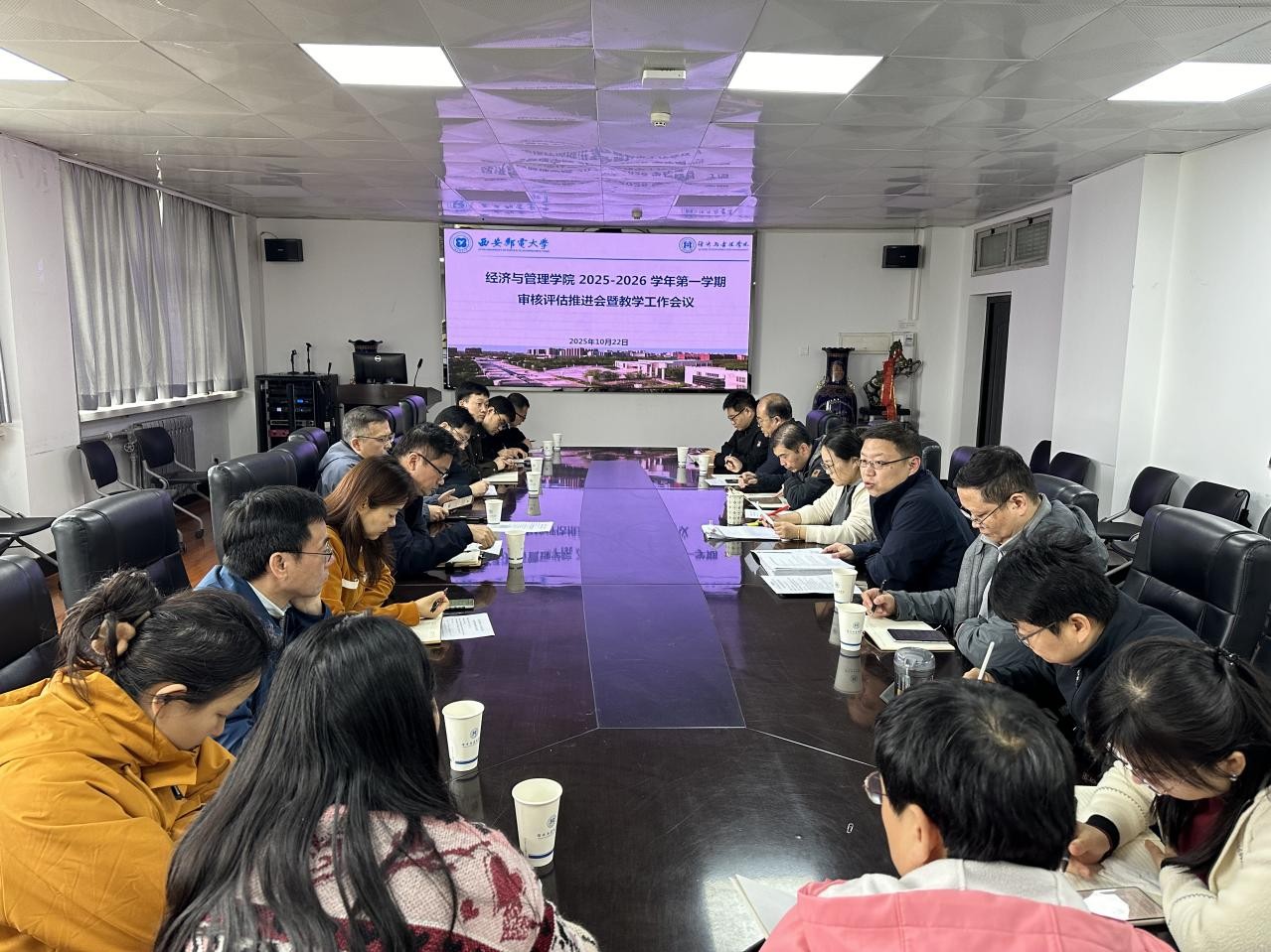 本网讯(通讯员 王萌)10月22日,为统筹推进本科教育教学审核评估整改任务落实工作、扎实落实好学院教学重点工作任务,经济与管理学院在雁塔校区图科楼1403会议室召开本科教育教学审核评估推进会暨教学工作会议。学院本科教育教学审核评估领导小组成员、各专业负责人、教学督导组组长、本科生辅导员及教务办工作人员等参会。会议由学院副院长侯光文主持。