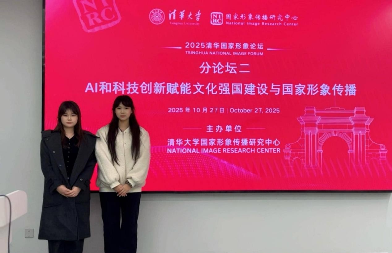 本网讯(通讯员 赵晨希 梁嘉桐)近日,由清华大学国家形象传播研究中心主办的2025清华国家形象论坛在北京召开。本次论坛以“以文化强国塑国家形象”为主题,吸引来自政府部门、知名企业、主流媒体及高校学界的400余名专家学者参加。数字艺术学院硕士研究生赵晨希、梁嘉桐受邀参会,并作主题分享