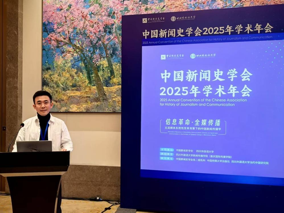 本网讯(通讯员 杨忠杨)11月21日-23日,中国新闻史学会2025年学术年会在重庆召开。数字艺术学院教师杨忠杨受邀参会并作主题报告。