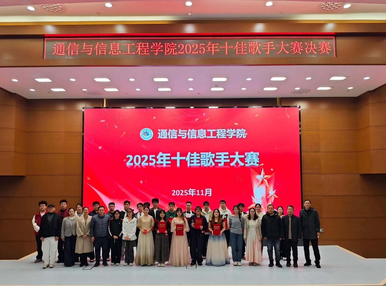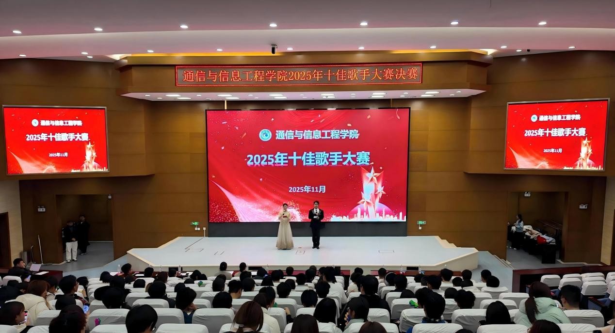 本网讯(通讯员 刘佳璇)11月24日晚,为深入推进“五育并举”,大力实施“美育浸润”计划,通信与信息工程学院在长安校区东区逸夫报告厅举办2025年十佳歌手大赛决赛。学院党委书记田卫蒙、副书记陈伟超,校团委相关人员、学院全体辅导员老师及400余名学生参加活动。