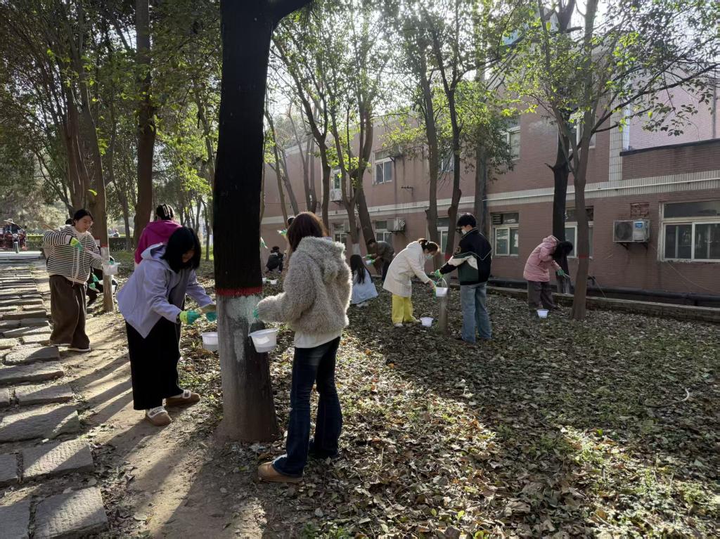 本网讯(通讯员 玛丽亚木)11月27日下午,党委学生工作部、后勤管理处、外国语学院在长安校区西区联合开展“涂白护树,温暖校园”劳动育人实践活动。