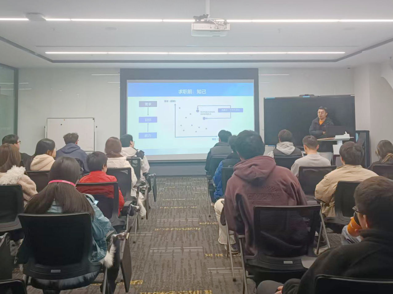 公司负责人宋晓陆介绍了企业发展历程,结合业务案例系统讲解了云计算、大数据安全、人工智能、音视频等领域的产品布局与核心技术成果。同时,聚焦学生成长与职业发展,从提高数字素养、培养AI时代劳动能力、锻炼创新技能三个方面提供指导,助力同学们深化专业认知、明晰学习与职业规划。