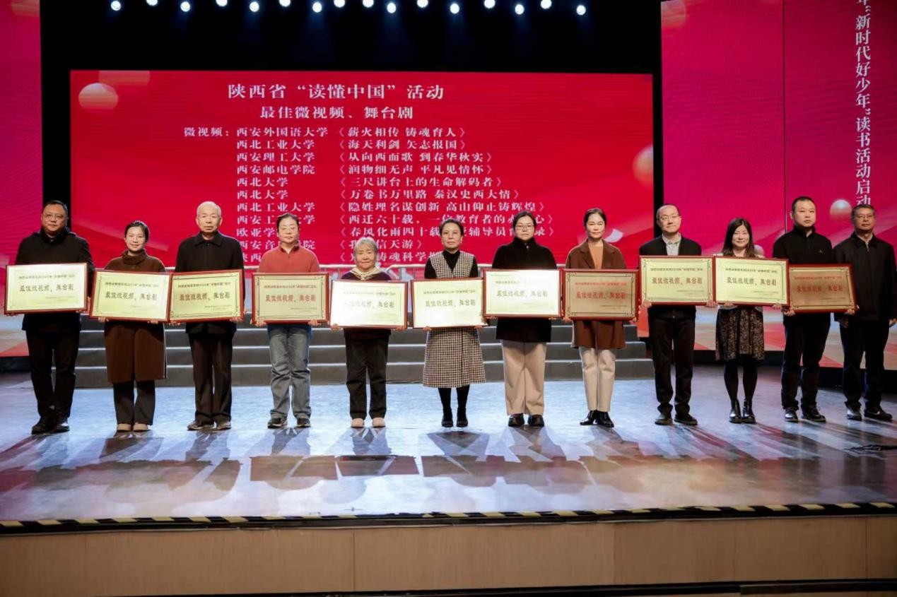 本网讯(通讯员 孙磊)近日,陕西省教育系统关心下一代工作委员会在西安音乐学院召开“读懂中国”活动表彰大会。我校拍摄的微视频《润物细无声 平凡见情怀》在2025年陕西省“读懂中国”活动中荣获最佳微视频、舞台剧类奖项。