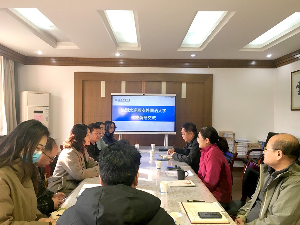 本网讯(通讯员 田枫)12月29日下午,西安外国语大学教学质量监测与评估办公室主任李禹一行来校调研交流本科教育教学审核评估整改工作。我校教学质量监控与评估办公室主任孙爱晶主持座谈会,办公室相关负责人参加会议。