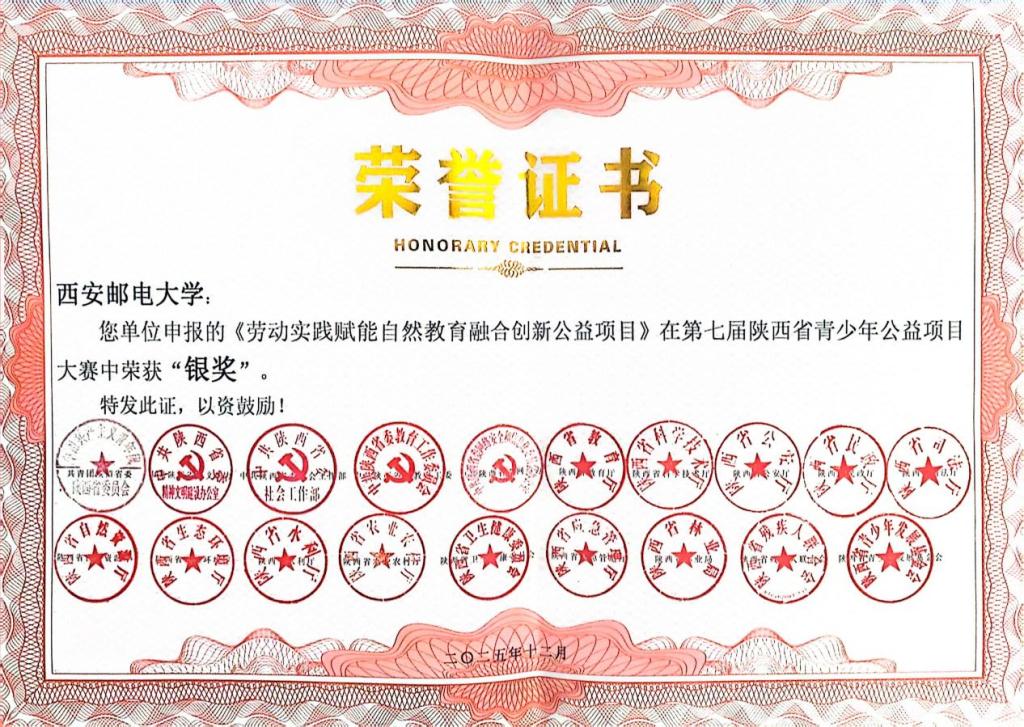 本网讯(通讯员 邓博文 晋金才)近日,由共青团陕西省委、中共陕西省委文明办、中共陕西省委社会工作部、中共陕西省委教育工委等20家单位共同主办的第七届陕西省青少年公益项目大赛落幕。我校推荐的《“全民健身·公益同行”社区全民健身公益服务项目》荣获金奖,《劳动实践赋能自然教育融合创新公益项目》荣获银奖。