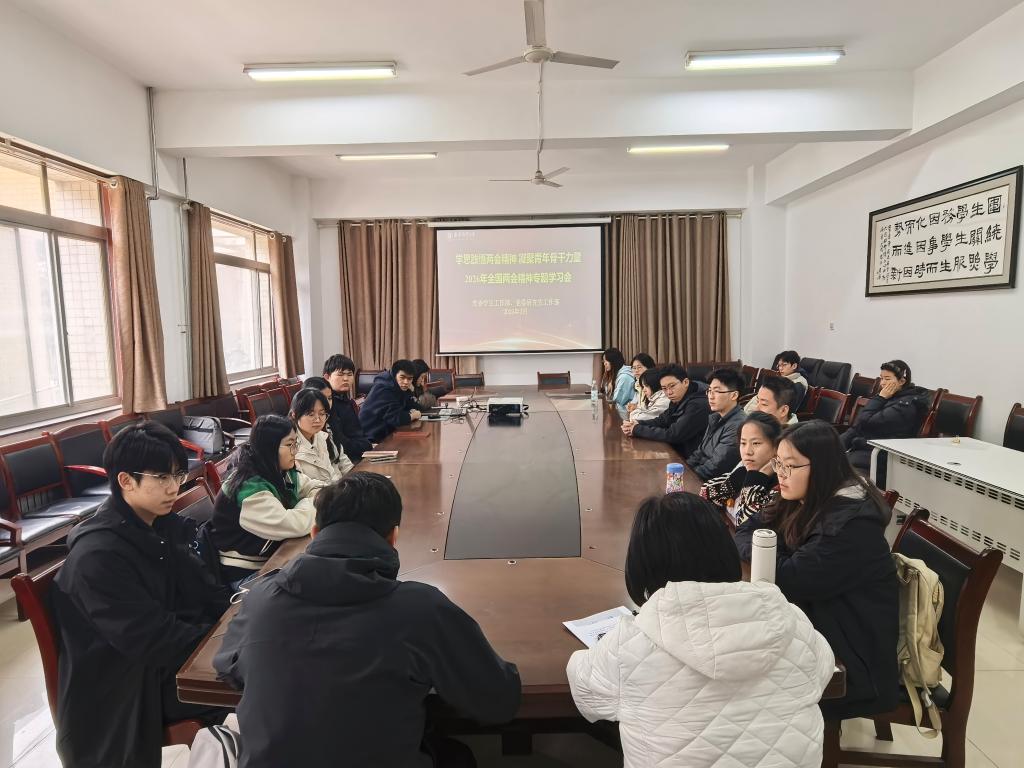 本网讯(通讯员 刘璟)3月19日,党委学生工作部、党委研究生工作部举办“学思践悟两会精神 凝聚青年骨干力量”专题学习会,深入学习贯彻2026年全国两会精神,引导学生骨干坚定理想信念、勇担时代使命。党委学生工作部、党委研究生工作部相关负责人,党员工作站指导教师,党员工作站联席委员会成员、各党员工作站站长及学生骨干参加学习。