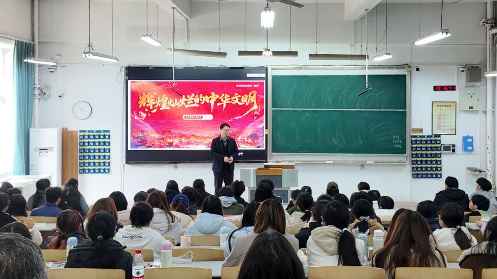 报告会上,宋文杰以《辉煌灿烂的中华文明》为题,从“文明成就的光辉丰碑”“中华文明特质的三重维度”“中华文明辉耀古今中外”三个层面,结合丰富史料与典型案例,系统梳理了中华文明源远流长、博大精深的发展脉络,生动阐释了中华优秀传统文化的精神内核与时代价值。他结合青年学生的思想特点,就新时代传承弘扬中华文化提出具体建议,寄语广大青年坚定文化自信、增强文化认同,在知行合一中厚植家国情怀。