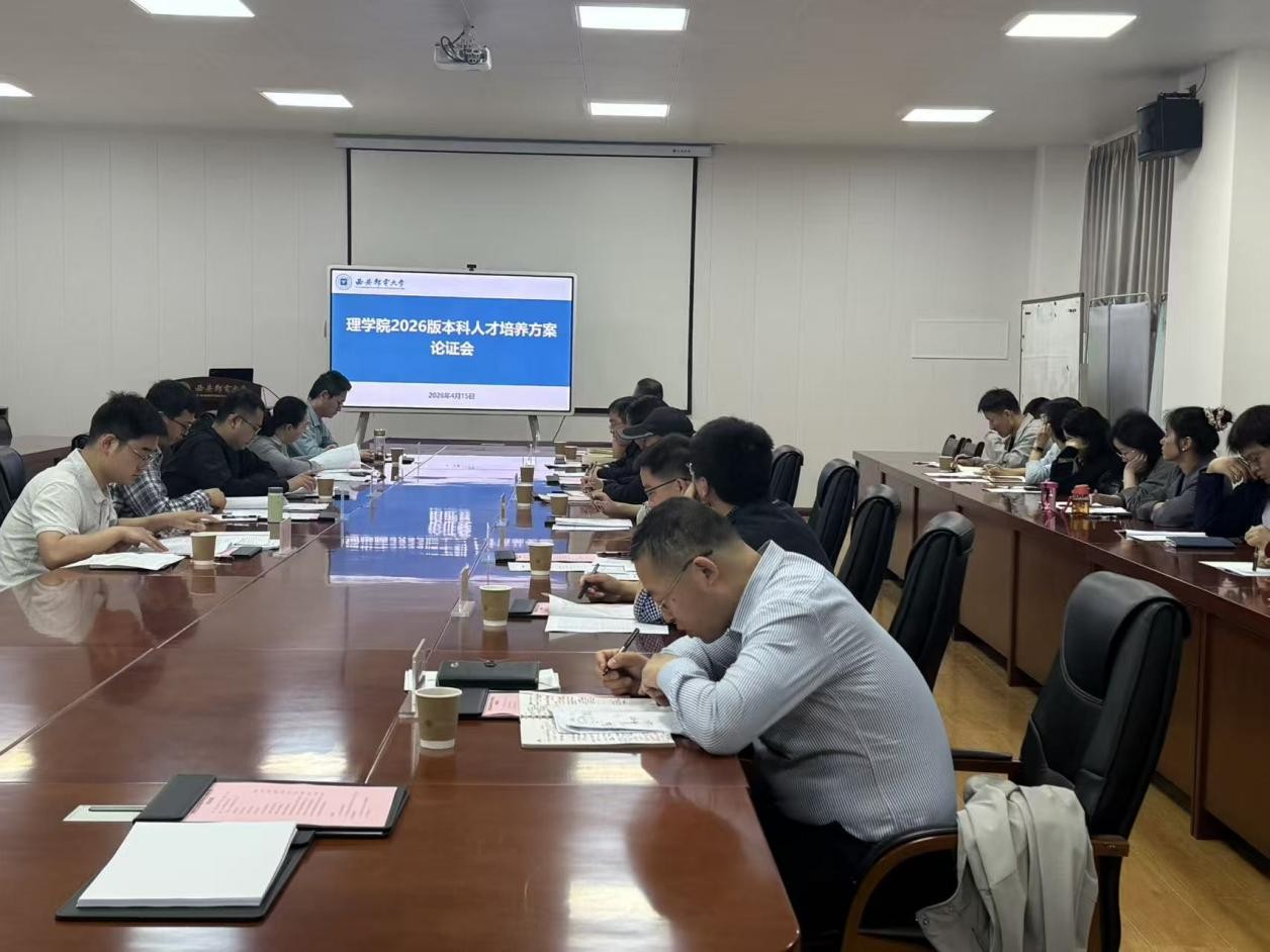 本网讯(通讯员 蔡小英)4月15日下午,理学院召开2026版本科专业人才培养方案专家论证会。陕西师范大学物理学与信息技术学院副院长高健智教授、西安建筑科技大学史加荣教授、西安石油大学肖美霞教授、陕投关中新能源有限公司孟俊辉、本源量子计算科技(合肥)股份有限公司代方园应邀担任论证评委。学院院长冯锋、各专业负责人、系主任及教师代表参会,学院副院长张云光主持会议。