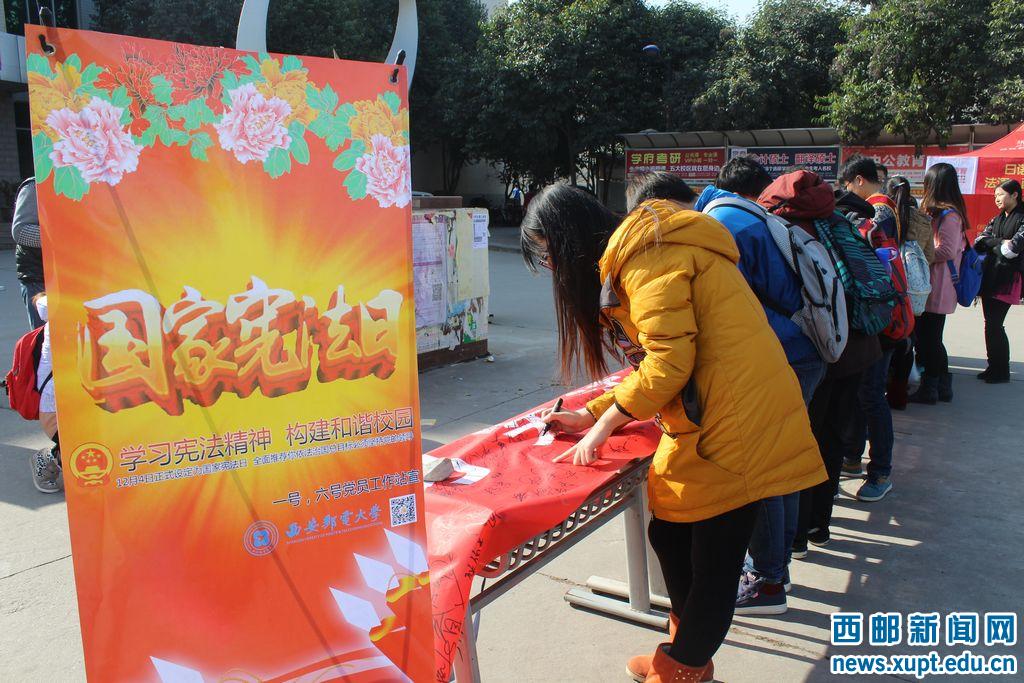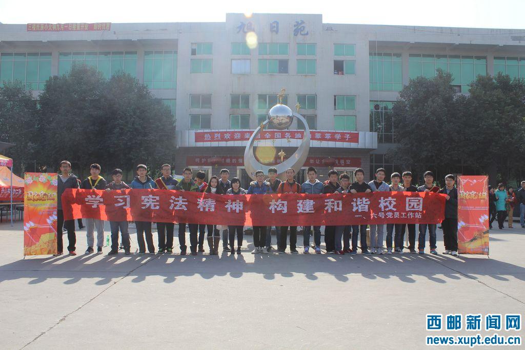 本网讯 今天是我国首个国家宪法日,为进一步提高我校师生的法律意识,构建和谐、平安校园,自动化学院在长安校区旭日苑前进行首个国家宪法日宣传活动。