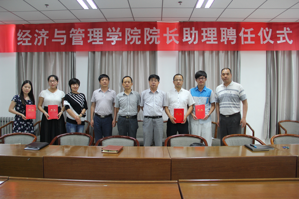 本网讯 6月24日下午,我校经济与管理学院首届学生院长助理聘任仪式在长安校区FZ555会议室举行,该院院长张鸿、党委书记樊广义、副院长李鹏飞、副书记郭黎,学院办公室、教务办、学工办相关负责人、学院首批4名学生院长助理及学生代表参加聘任仪式,该院党委副书记任辉主持仪式。